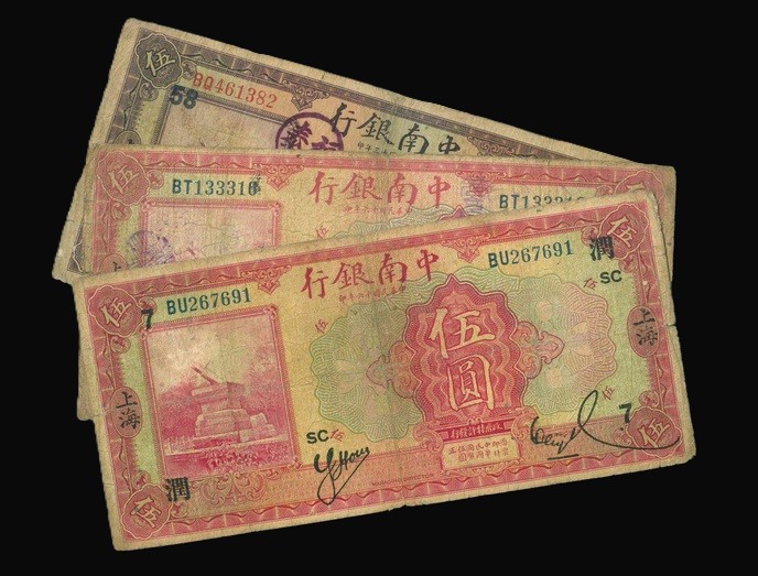 1941 上海中南銀行 $5 Fine 編號:BT133316…(共3張)