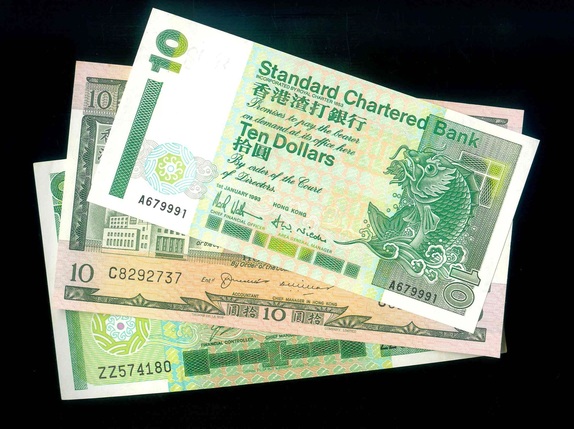 1970ND-1993 香港渣打銀行 $10 AU-UNC 編號:A679991…(共3張)