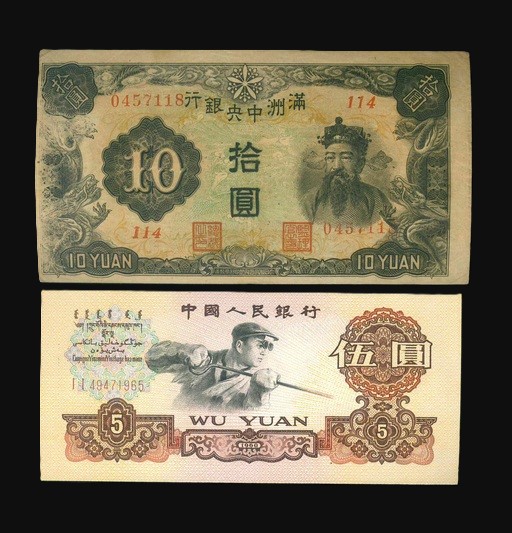 1940-1960 中國人民銀行 $5/ 滿洲中央銀行 $10 VF-UNC 編號:I I 49471965…(共2張)
