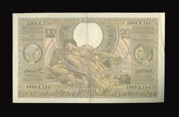 1935 比利時 100 Francs EF 編號:2369.K.754