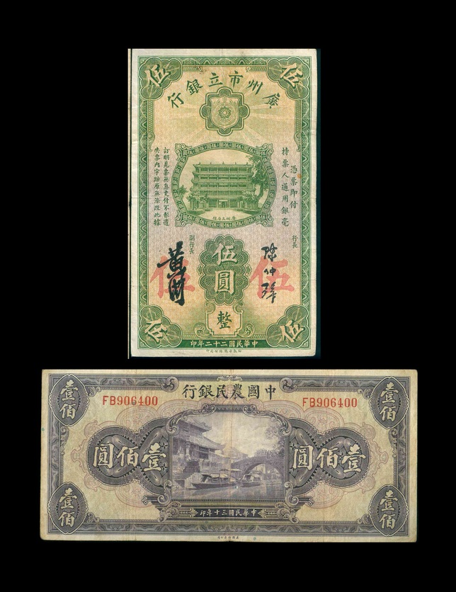 1933/1941 廣州市立銀行 $5/ 中國農民銀行 $100 VF 編號:C484984…(共2張)