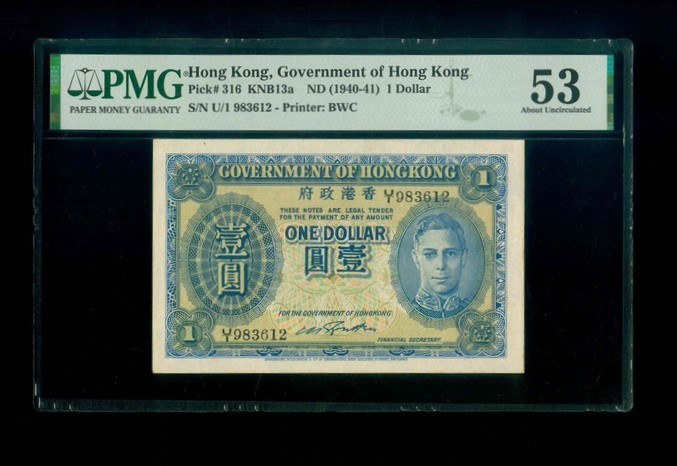 1940-41ND 香港政府 $1 PMG 53 編號:U/1 983612