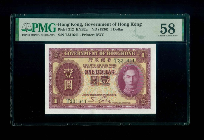 1936ND 香港政府 $1 PMG 58 編號:T331641