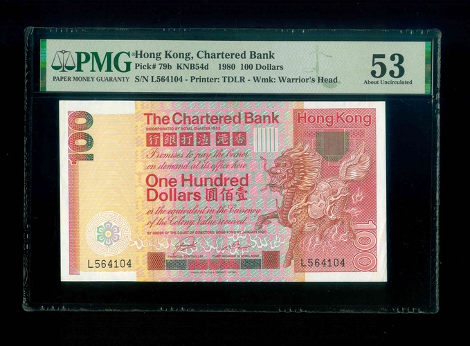 1980 香港渣打銀行 $100 PMG 53 編號:L564104