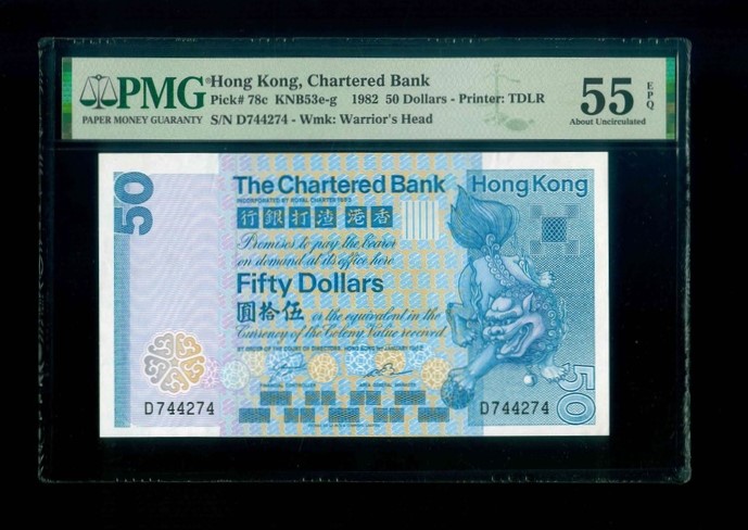 1982 香港渣打銀行 $50 PMG 55 EPQ 編號:D744274
