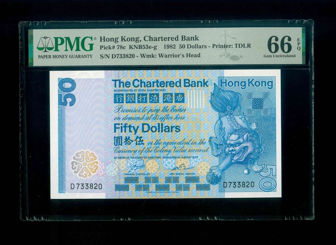1982 香港渣打銀行 $50 PMG 66 EPQ 編號:D733820