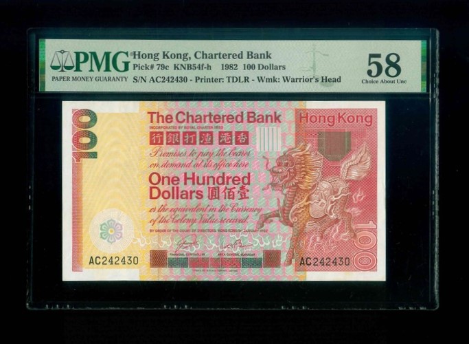 1982 香港渣打銀行 $100 PMG 58 編號:AC242430(Minor Stains)