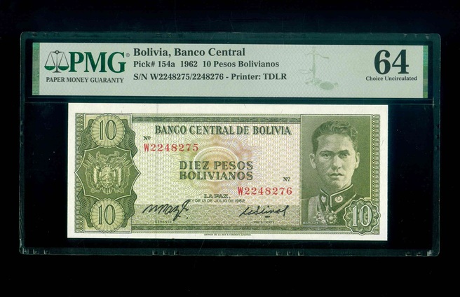 1962 玻利維亞 10 Pesos B. PMG 64 編號:W2248275