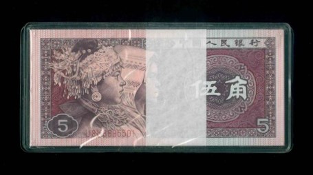 1980 中國人民銀行 伍角 編號:U8H8885501-5600(共100張,頂級雪白)