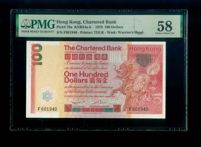 1979 香港渣打銀行 $100 PMG 58 編號:F601940