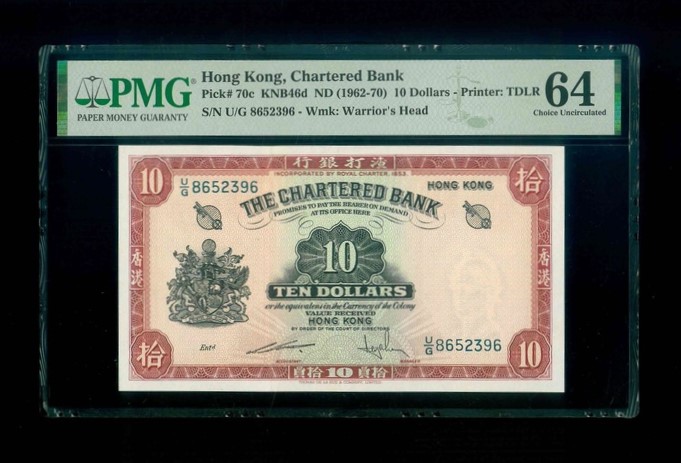 1962-70ND 香港渣打銀行 $10 PMG 64 編號:U/G 8652396