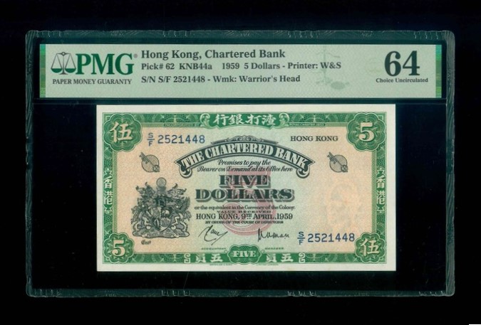 1959 香港渣打銀行 $5 PMG 64 編號:S/F 2521448