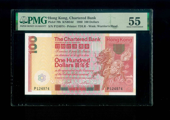 1980 香港渣打銀行 $100 PMG 55 編號:P124974(Minor Stains)