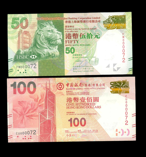 2012-16 香港上海匯豐/中國銀行$50-$100 UNC 編號: FM000072…(同號,共2張)