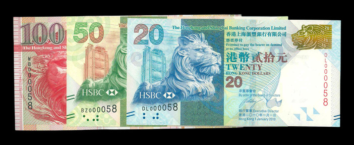 2009-12 香港上海匯豐銀行$20-$100 UNC 編號: DL000058…(同號,共3張)