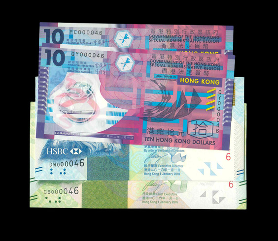 2007-16 香港政府/上海匯豐銀行$10-$50 UNC 編號: QY000046…(同號,共4張)