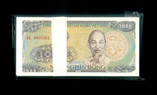 1988 越南 1000 Dong UNC 編號:ZL 8800501-600(原裝百連,含豹子號)