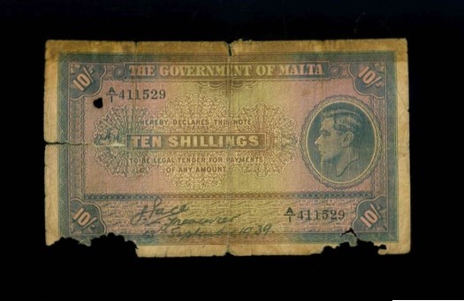 1939 英屬馬爾他 10/- Shilling G 編號:A/I 411529