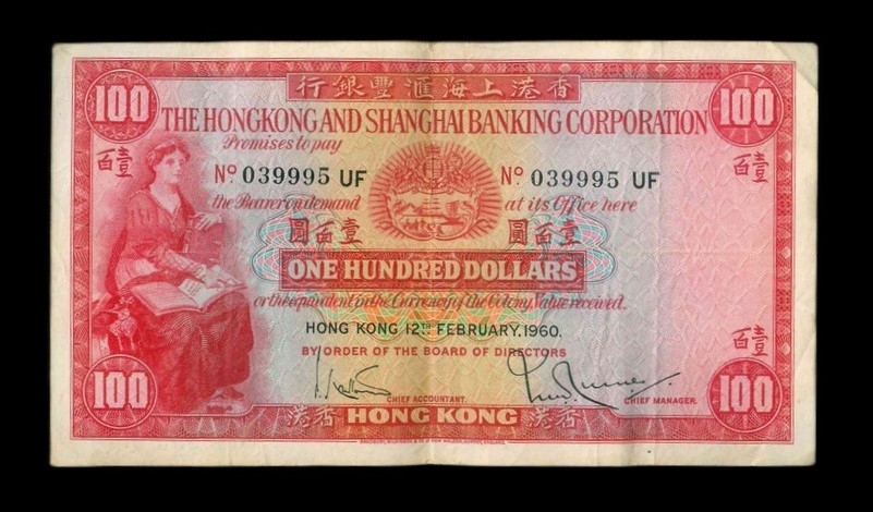 1960 香港上海滙豐銀行 $100 EF- 編號:039995 UF