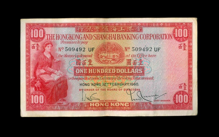 1960 香港上海滙豐銀行 $100 EF- 編號:509492 UF