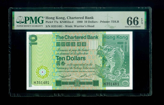 1980 香港渣打銀行 $10 PMG 66 EPQ 編號:H351481(頂級雪白)