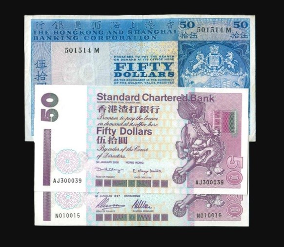 1969-2000 香港上海滙豐/ 渣打銀行 $50 VF- ~AU 編號:501514 M…(共3張)