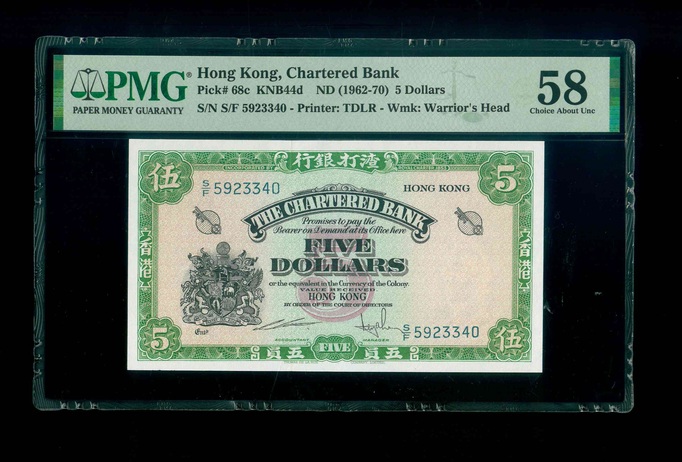 1962-70ND 香港渣打銀行 $5 PMG 58 編號:S/F 5923340