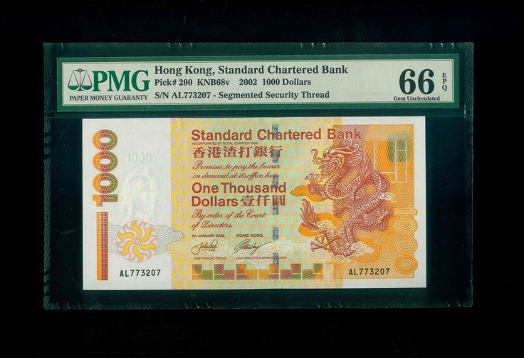 2002 香港渣打銀行 $1000 PMG 66 EPQ 編號:AL773207(頂級雪白)