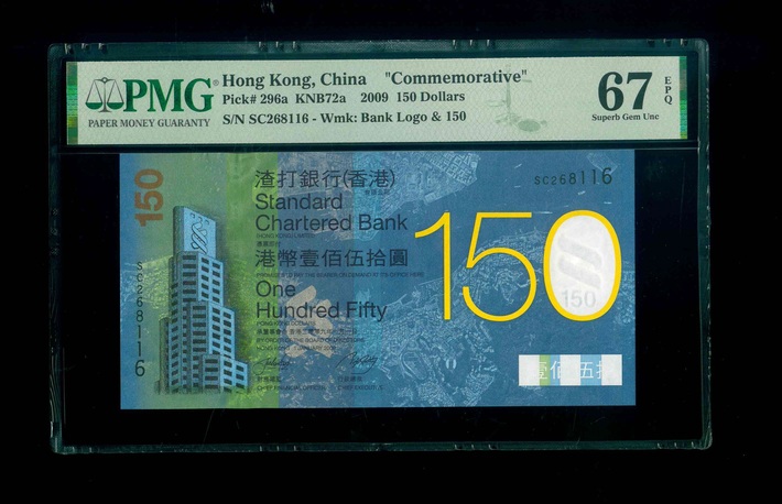 2009 香港渣打銀行紀念鈔 $150 PMG 67 EPQ 編號:SC268116(頂級雪白)