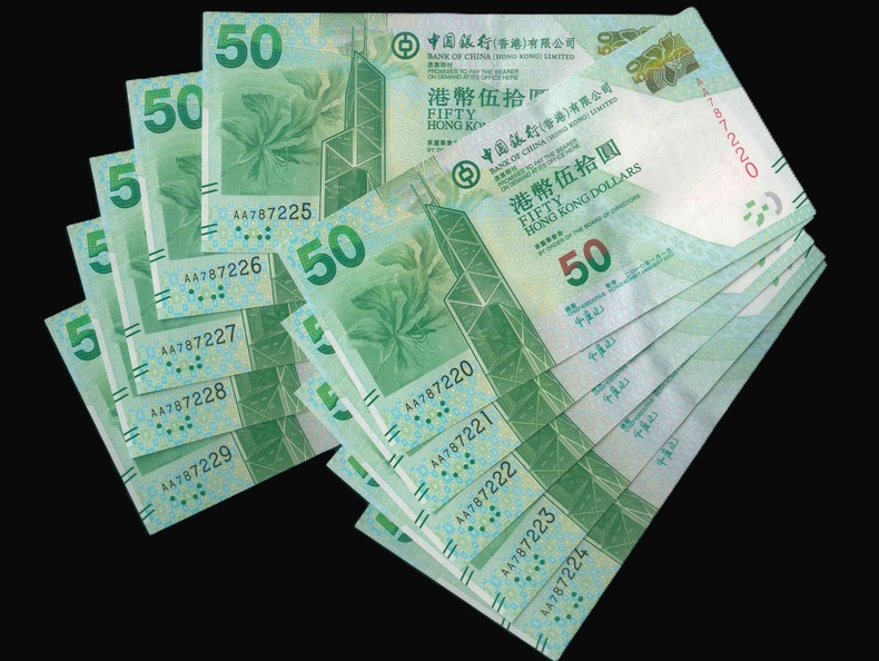 2010 香港中國銀行 $50 UNC 編號:AA787220-229(共10張,頭版連號,含豹子,頂級雪白)