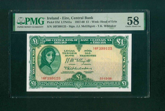 1958 愛爾蘭 £1 PMG 58 編號:16F 399125