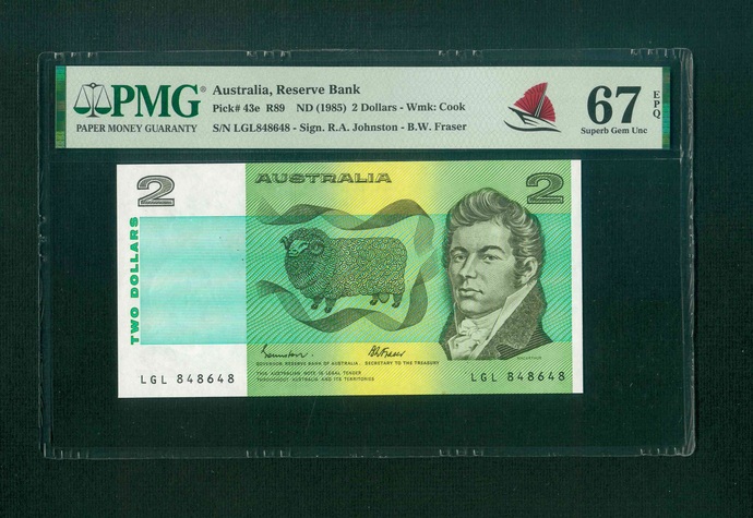1985ND 澳洲 $2 PMG 67 EPQ 編號:LGL 848648