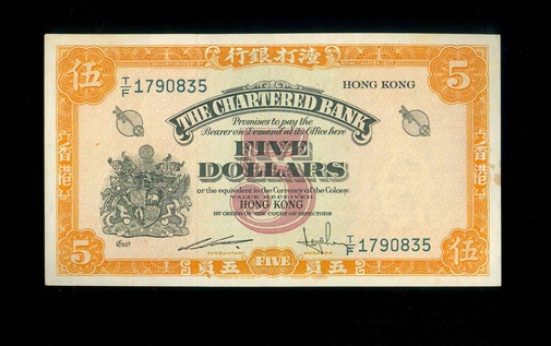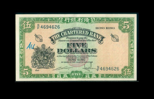 1962-70ND 香港渣打銀行 $5 AU 編號:S/F 4694626