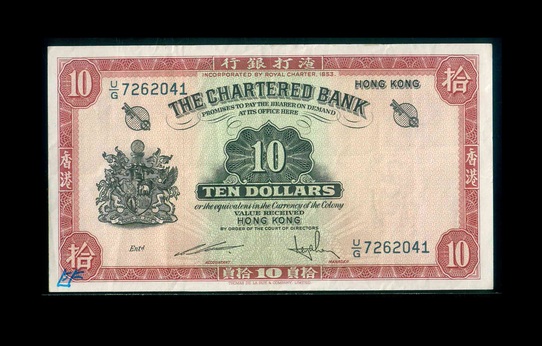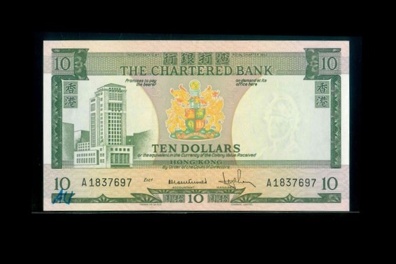 1977 香港渣打銀行 $10 AU 編號:A1837697