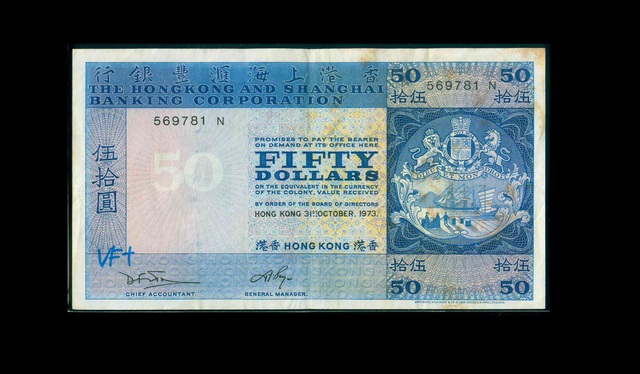 1973 香港上海滙豐銀行 $50 VF+ 編號:569781 N