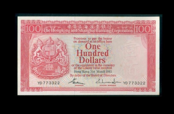 1983 香港上海滙豐銀行 $100 EF+ 編號:YD 773322(三對子)