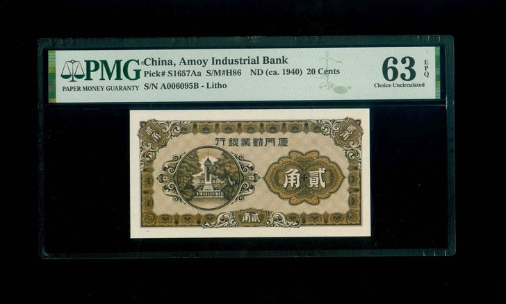 1940ND 廈門勸業銀行 2角 PMG 63 EPQ 編號:A006095B(頂級雪白)