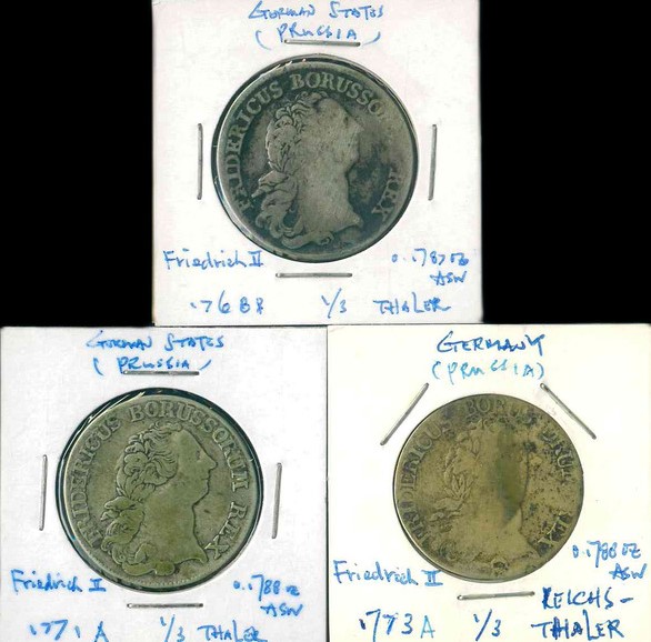 1763B/71A 德國普魯士 1/3 Thaler VG/F 編號: NIL(共3枚)