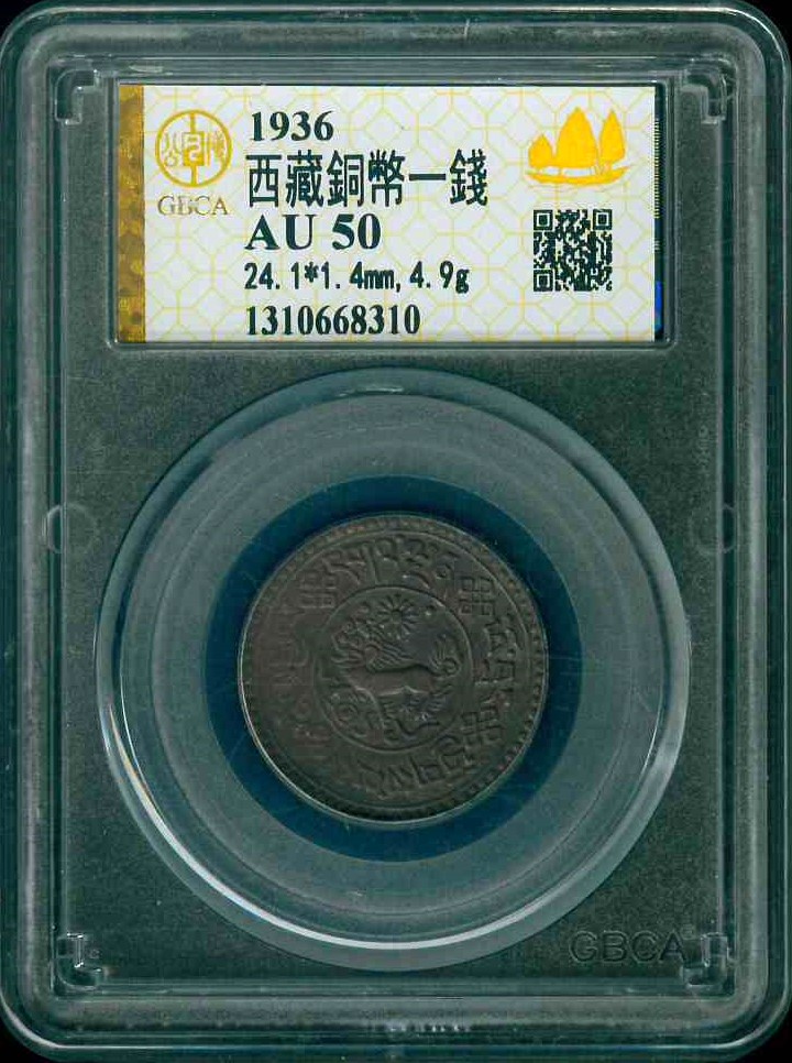 1936 西藏銅幣一錢 GBCA AU50 編號:1310668310