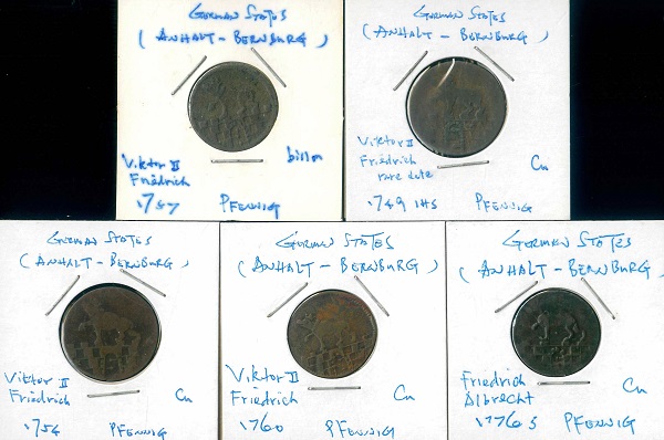 1749-1776 德國 (Anhalt Bernburg) Pfennig (不同) F/VF 編號:NIL(共5枚)