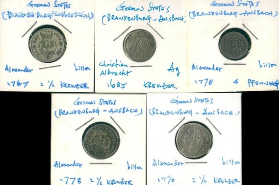 1685-1778 德國 (Brand Ansbach) 4P, K,2½K VF 編號:NIL(共5枚)
