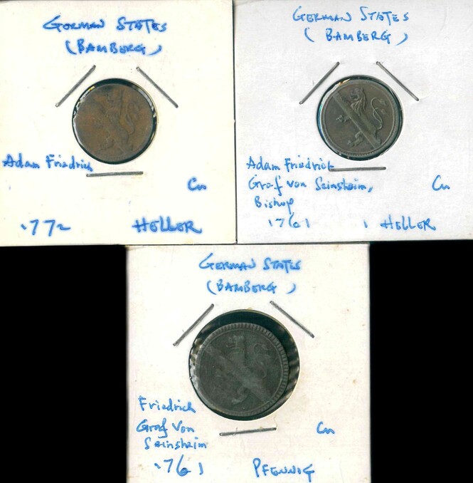 1761/72 德國 (Bamberg) Heller, Pfennig F/VF 編號:NIL(共3枚)