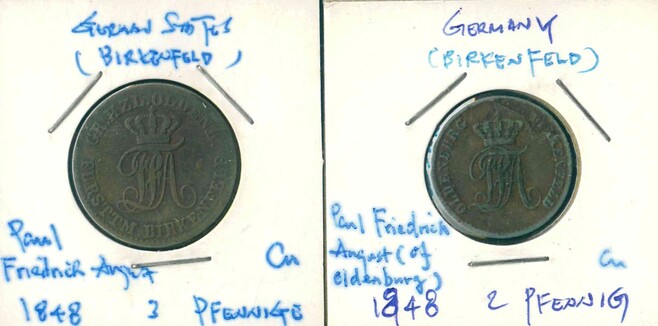 1848 德國 (Birkenfeld) 2,3 Pfennig VF 編號:NIL(共2枚)