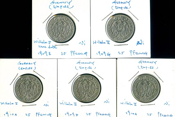 1909D-1910A 德國 (Empire) 25 Pfennig XF/AU 編號:NIL(共6枚)