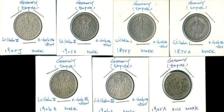 1875A-1907J 德國 (Empire) Mark (少有年份) XF/XF+ 編號:NIL(共7枚)