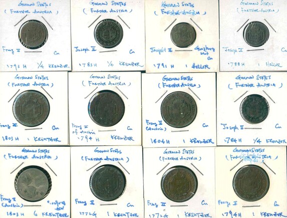 1772-1804 德國 (Futher Austria) Heller, ¼,1,6 Kreuzer F-~VF 編號:NIL(共12枚)