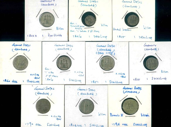 1790-1855 德國 (Hambourg) Dreiling,Schilling VG/VF/XF 編號:NIL(共10枚)