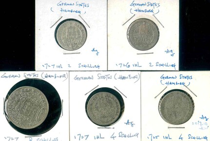 1725-27 德國 (Hambourg) 2,4,8 Schilling VF/XF 編號:NIL(共5枚)