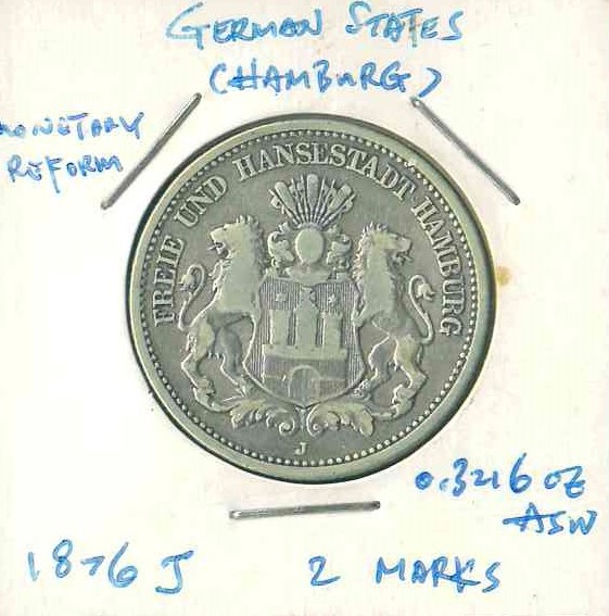 1876J 德國 (Hambourg) 2 Marks (rare date) VF 編號:NIL