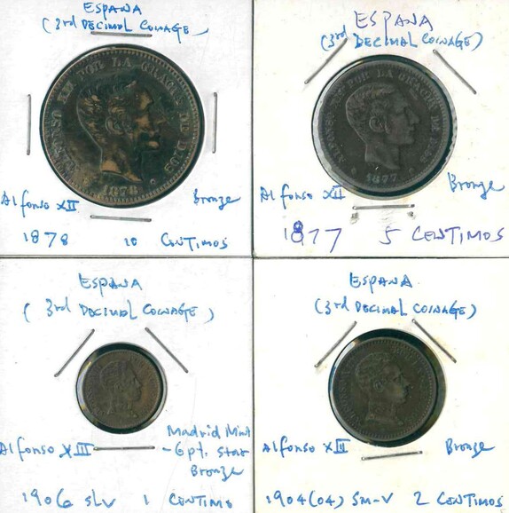 1877-1906 西班牙 1-10 Centimos XF/AU 編號:NIL(共4枚)